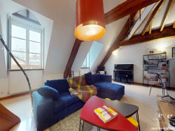 Votre agence OFFICE IMMOBILIER vous propose en EXCLUSIVITE à BESANCON - BOUCLE ce grand appartement situé au deuxième et dernier étage avec ascenseur d'un bel immeuble en pierre répertorié monument historique. Cet appartement traversant et singulier, propose au calme, et en plein centre ville de Besançon, de belles prestations et une configuration rare ! Datant du XVIème, ce bien d'environ 170 m² au sol sur trois étages a été totalement réhabilité avec goût. Une fois le pas de porte passé, on découvre la grande salle à manger ouverte sur le salon et la cuisine de 16m² équipée haut de gamme avec hotte à extraction extérieure. Les volumes sont imposants et la lumière omniprésente. Les nombreuses poutres en chêne qui ornent le plafond et structurent cette grand pièce de vie diffusent une atmosphère chaleureuse. Et puis, vient l'espace salon, quel spectacle ! C'est en levant les yeux que l'effet waouh prend tout son sens : à la façon d'un plafond cathédral, c'est toute la structure savante de la charpente qui s'offre au regard, ajoutant une dimension visuelle et esthétique distinctive à ce beau volume. On retrouve sur ce niveau une suite parentale de 25m² (chambre, SDB, dressing). C'est par un élégant escalier que l'on accède aux étages, 2 chambres avec chacune leur SDE et WC (17 et 19m²), un bureau (ou chambre) de 20m² au sol (poss. SDB), ainsi que de nombreux rangements, placards dans toutes les chambres. Cet appartement hors normes avec vues bien dégagées est très lumineux, possède de beaux volumes. Il est aussi très fonctionnel avec ses innombrables rangements. Les sols sont en pierre et en parquet chêne. Deux grandes caves voûtées parachèvent ce bien d'exception. Enfin, deux nouvelles chaudières à condensation promettent de bonnes performances énergétiques ( DPE C ). Et pour finir, n'oublions pas l'accès sécurisé avec VIGIK et alarme. Vous êtes séduits ? Alors contactez, sans tarder, votre agence Office Immobilier afin d'échanger avec le conseiller en charge de ce dossier et de programmer une visite de ce bien exceptionnel qui vous permettra véritablement de mesurer et d'apprécier tout son potentiel !