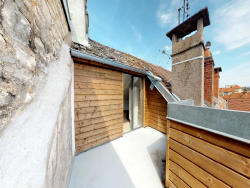 BESANÇON - Chaprais Appartement de 2 pièces en 3ème et dernier étage traversant. Copropriété en parfait état. Place de parking privative. Appartement traversant et très lumineux avec une superbe vue dégagée sans vis à vis. Prestations de standing pour cet appartement composé d'une grande pièce de vie mansardée avec accès à une terrasse sur la toiture de 20m², une chambre, une salle de bains, un WC séparé et une cave. Appartement neuf jamais habité offrant des prestations rares sur le marché. A deux pas du coeur des Chaprais et de tous les commerces .