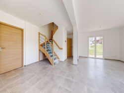 BESANCON - POUILLEY LES VIGNES - MAISON NEUVE - 3 CHAMBRES - 3 ARES 34 Votre agence OFFICE IMMOBILIER vous propose en EXCLUSIVITE dans le charmant village de POUILLEY LES VIGNES à proximité immédiate de BESANCON cette maison neuve en cours de finition édifiée sur 3 ares 34 de terrain. L'alliance parfaite de la vie à la campagne avec les commodités de la ville. (Commerces, pôle scolaire, collège...). Cette maison est située à proximité du centre du village dans un chemin privatif en impasse et au calme. Cette construction ZENITH se compose, au niveau principal d'une entrée avec possibilité de créer un placard de rangement, une salle d'eau avec WC, une spacieuse et lumineuse pièce de vie grâce à ses nombreuses ouvertures et son exposition. Un accès direct au terrain et à la terrasse à aménager selon vos gouts et vos envies. La pièce de vie offre l'espace nécessaire pour créer votre cuisine idéale, les réseaux sont en attentes. Sur ce niveau également un cellier, buanderie avec accès direct au garage avec porte motorisée, et au jardin grâce à une porte de service. L'étage supérieur est constitué de trois chambres, une salle de bains avec baignoire et WC. Cette maison est classée en A, avec un système de chauffage performant et économique. On apprécie la qualité des matériaux utilisés et les prestations de cette maison bien pensée, autant en confort et praticité de vie que d'un point de vue économique. A découvrir sans tarder. La visite virtuelle de la maison voisine finalisée et déjà vendue est disponible sur notre site internet : Officeimmo