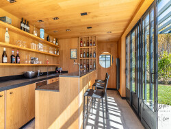 Un double garage indépendant, un local technique et pool-house avec cuisine d'été complètent cette élégante contemporaine à quelques pas des commerces.