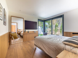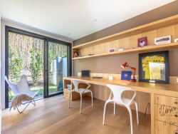 Le rez de chaussée bénéficie d'une belle pièce de vie prolongée de sa cuisine et sa buanderie, d'une suite parentale avec salle d'eau , dressing et bureau. Deux autres chambres avec chacune leur salle de bains complètent l'espace nuit à l'étage.