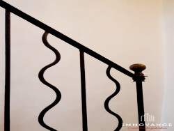 Un grand escalier dessert les différents étages de cette demeure restaurée avec goût, dont chacun des éléments gardés témoignent des diverses époques qu'elle a traversées.