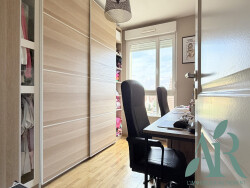 Vous y découvrirez une entrée et couloir dégagement avec des placards de rangement, desservant tour à tour toutes les pièces de l'appartement. Le salon séjour spacieux avec parquet au sol donne deux accès à la grande terrasse de 18m2 donnant sur un environnement verdoyant et sans vis à vis, accompagné d'un store électrique.