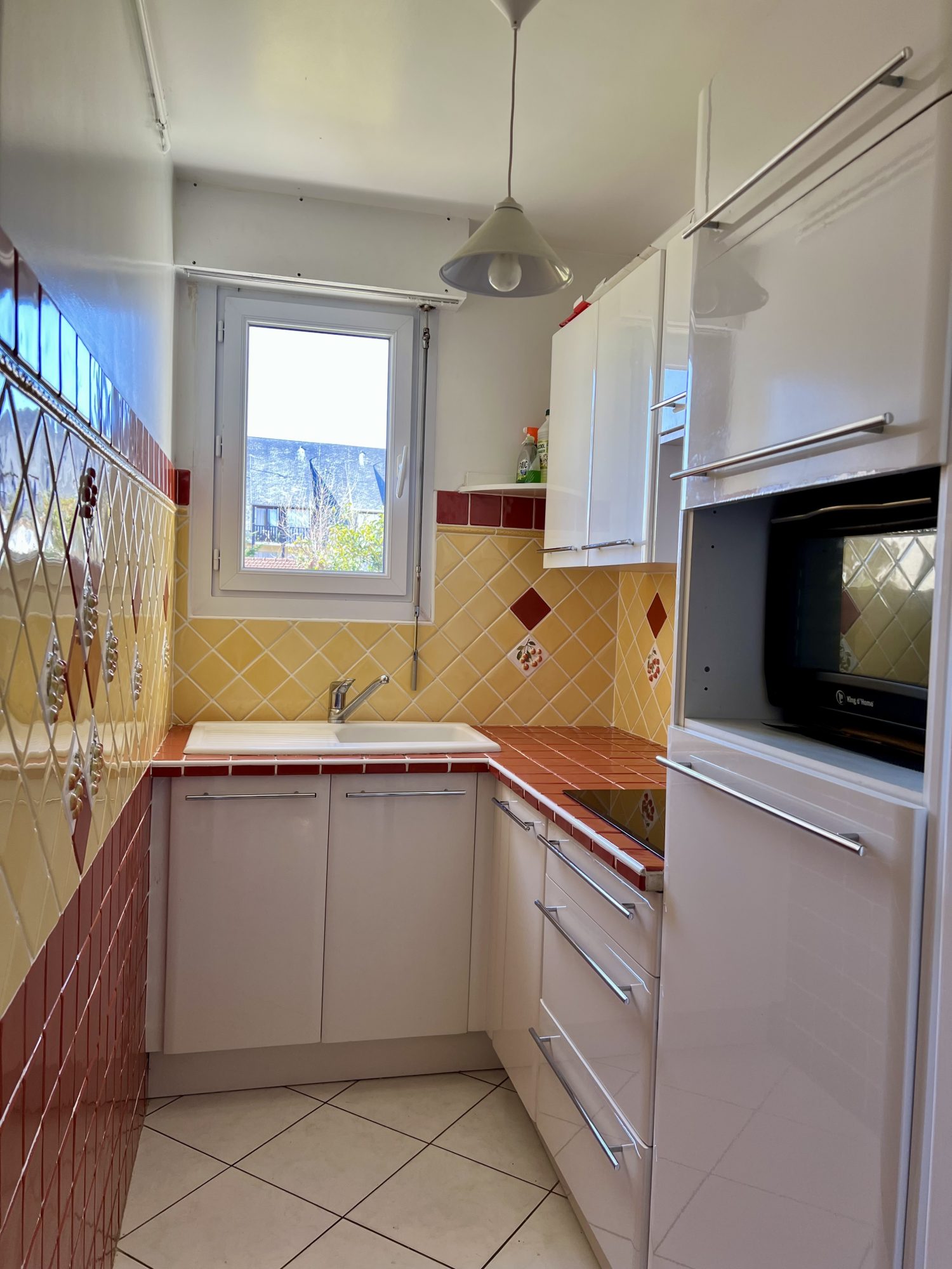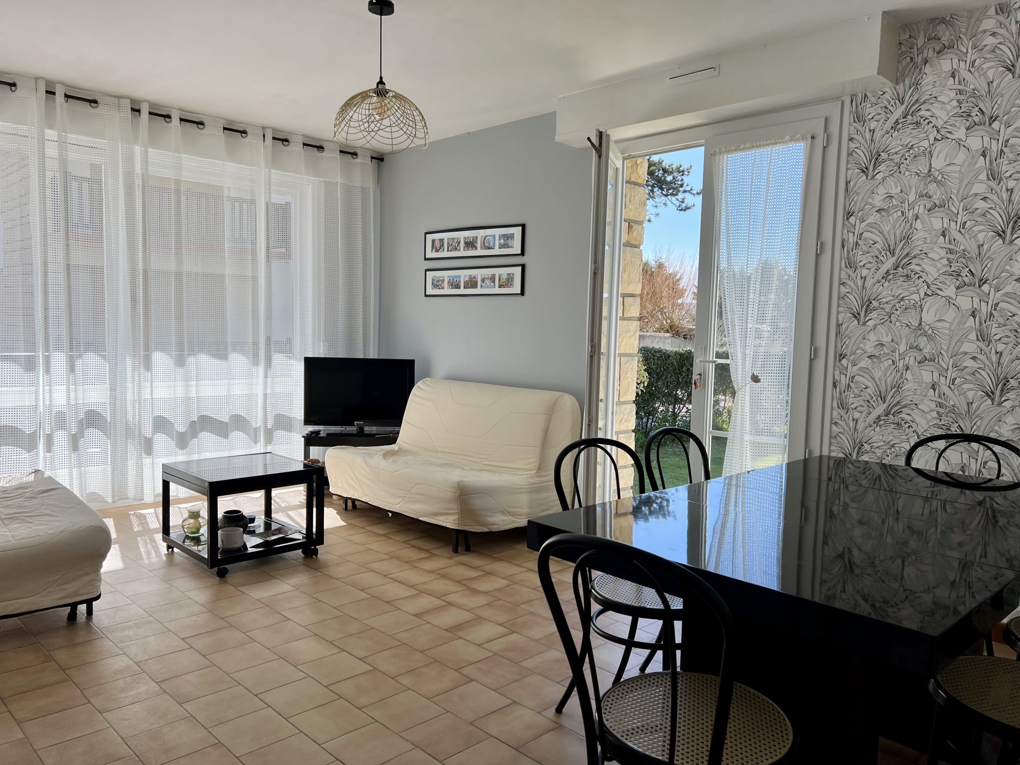 Dans une résidence de style Normand, à 400 mètres environ du centre ville et de la plage, cet appartement est distribué en :