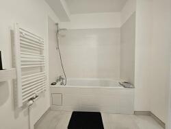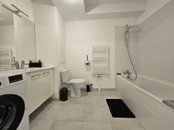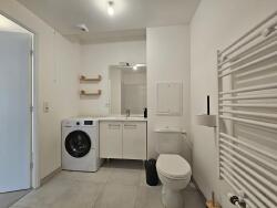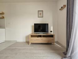 Cet appartement lumineux est composé du séjour avec canapé convertible, bureau et écran plat, d'un extérieur, de la cuisine ouverte équipée et de la salle d'eau spacieuse avec baignoire.