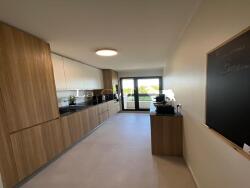 Cuisine indépendante avec volets roulants et double vitrage, garantissant isolation et tranquillité