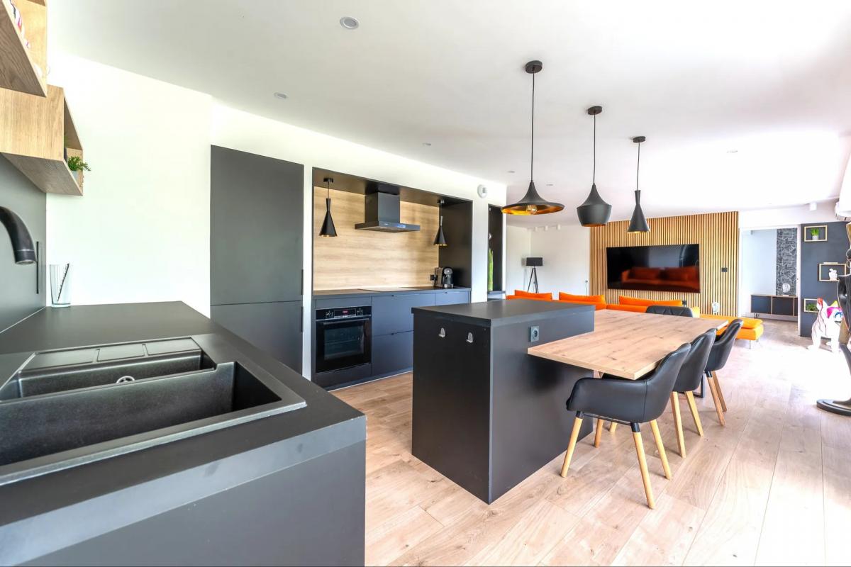 Entièrement de plain-pied, cet appartement très lumineux se compose d'une entrée, d'un vaste salon/salle à manger traversant de 55m² avec poêle à bois, ouvrant sur une grande terrasse de 38m². Profitez du couché de soleil en toute saison, au calme, sans vis-à-vis et avec une vue dégagée! Une cuisine séparée, aménagée et équipée vient compléter les espaces de vie. L'espace nuit offre 2 chambres avec rangements intégrés, dont une suite avec salle d'eau privative, complété d'une deuxième salle d'eau et un WC indépendant.