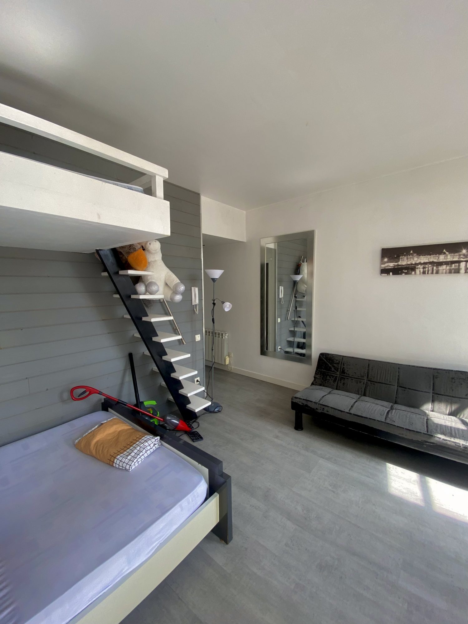 Entièrement meublé (canapé, télévision, literie ,machine à laver et salle à manger), il se compose d'une entrée avec grands placards, d'un séjour ouvert sur la cuisine, d'une salle d'eau avec WC et d'une chambre en mezzanine.