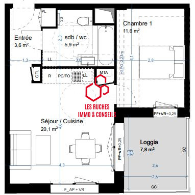 Entièrement meublé (canapé, télévision, literie ,machine à laver et salle à manger), il se compose d'une entrée avec grands placards, d'un séjour ouvert sur la cuisine, d'une salle d'eau avec WC et d'une chambre en mezzanine.