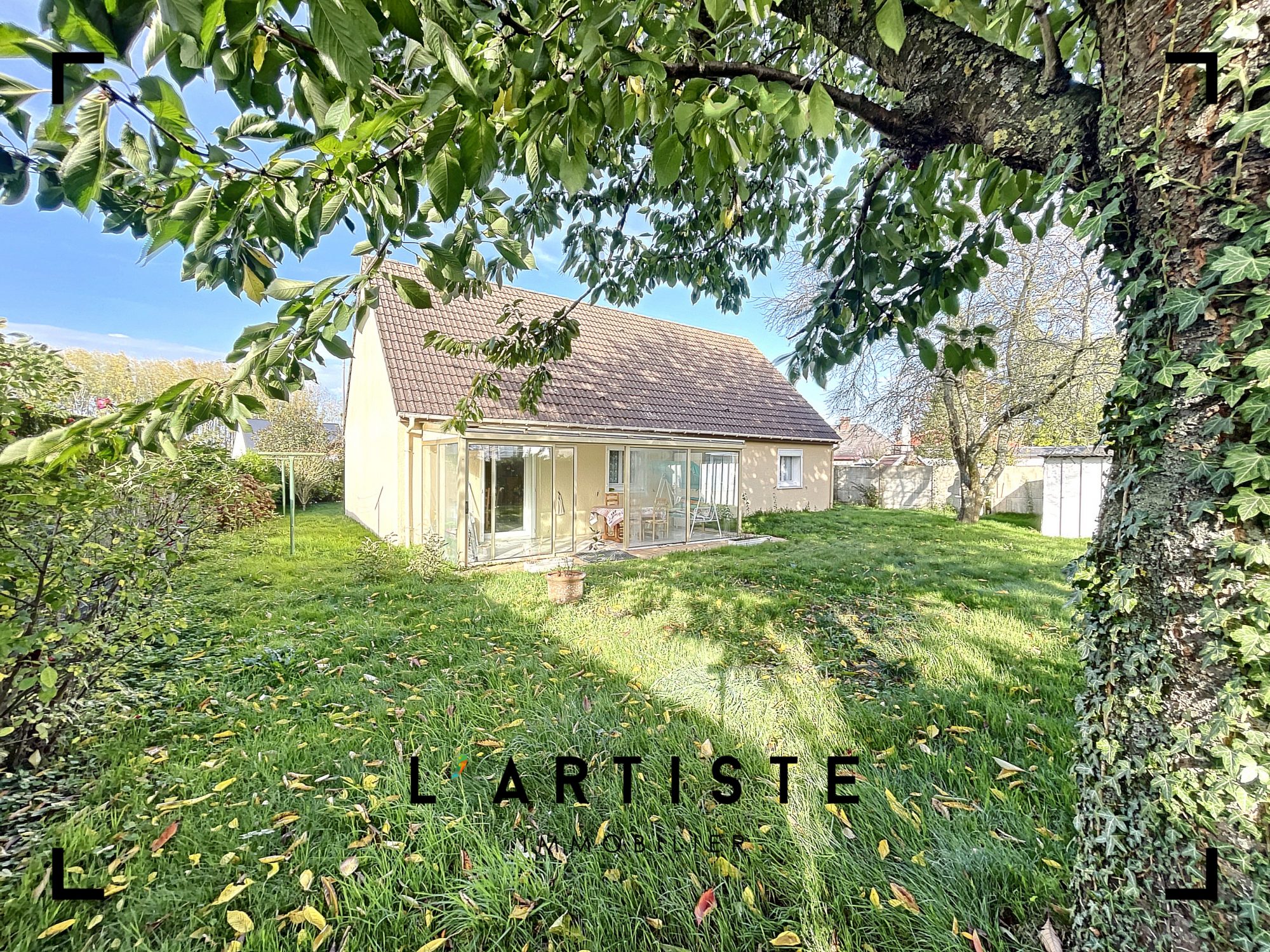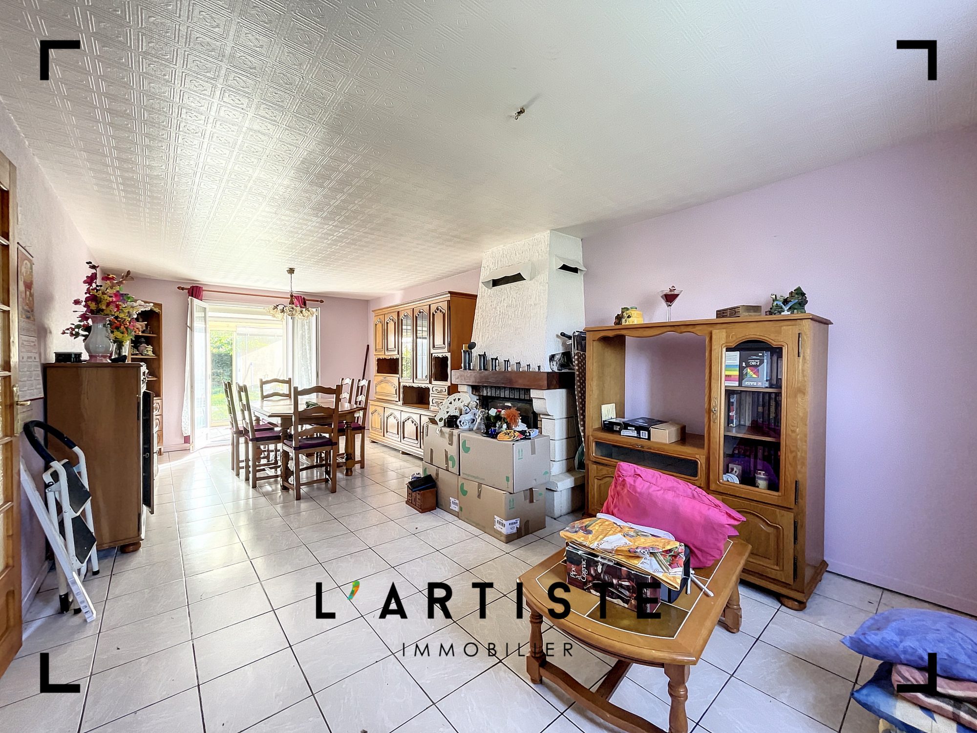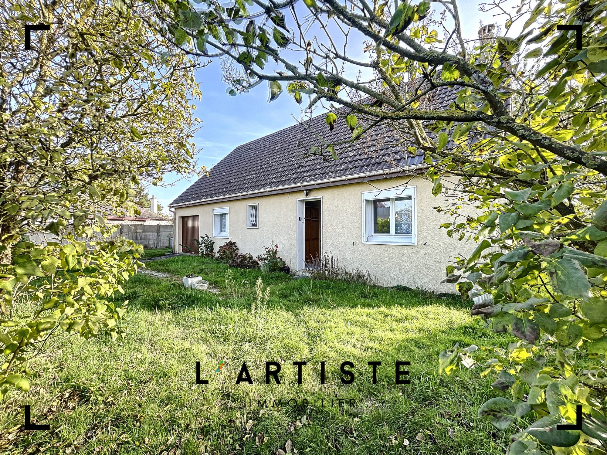 Pavillon individuel Rénové sur sous-sol total comprenant de plain-pied : Cuisine aménagée et équipée ouverte sur séjour / salon de plus de 40 m², 2 chambres, bureau, salle de douche et wc.
