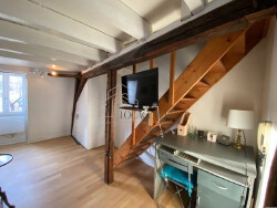 Réf : 11477.02.G - BOURGES CUJAS - APPARTEMENT MEUBLE TYPE 1 BIS - 33m² - TRES BELLE VUE SUR LA NOUVELLE PLACE CUJAS - DUPLEX AVEC ESPACE NUIT EN MEZZANINE - BEAUCOUP DE CHARME - Pièce à vivre, Cuisine aménagée et équipée, Espace nuit en mezzanine avec rangement, Salle d'eau avec douche et toilette - Type de chauffage : Individuel électrique -