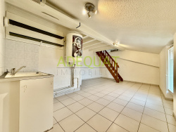 BOURGOIN JALLIEU en 'HYPER CENTRE VILLE', appartement de type 2 au dernier étage en duplex comprenant entrée, salon-séjour et une cuisine ouverte. A l'étage : 1 chambre et une salle de bains avec WC. Exposition OUEST. Environnement calme. Vue dominante sur la ville. Proximité immédiate des commodités (commerces, écoles, gare cinéma...). Copropriété sécurisée de 14 lots. Charges de 39EUR par mois. Equipements : chauffage et eau individuel, fenêtres PVC double vitrage, internet par la fibre, interphone...Vidéo disponible sur notre site. POUR PLUS DE RENSEIGNEMENTS CONTACTER VOTRE AGENT COMMERCIAL LOIC BERTHELOT AU 06x81x60x36x37. Les informations sur les risques auxquels ce bien est exposé sont disponibles sur le site Géorisques : www.georisques.gouv.fr