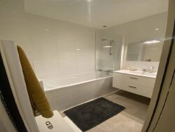 Il comprend un couloir aménagé de placard-penderie, un grand salon / séjour avec coin cuisine, un dégagement équipé d'étagères murales, 2 chambres chacune équipée de placard, une salle de bain et un WC. Le tout pour une superficie de 59,04m². Chauffage individuel au gaz. Disponible dès mi mai.