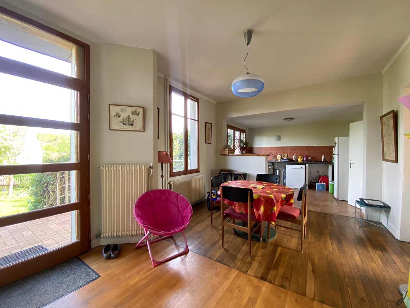 A BOUVILLE, agréable longère rénovée vous offrant une entrée sur salle à manger avec insert et une cuisine ouverte aménagée et équipée, un salon, une chambre, une salle d'eau, un WC et une buanderie. A l'étage, un palier et deux chambres. Le tout sur a terrain clos et arboré de 1098m2 avec dépendances. PRENEZ RENDEZ-VOUS POUR LA VISITER !