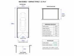 Longueur : 8,70 m Largeur : 2,47 m Hauteur : 2,60 m Hauteur d'entrée : 1,90 m Largeur d'entrée : 2,00 m Largeur d'accès au garage : 2,50 m max