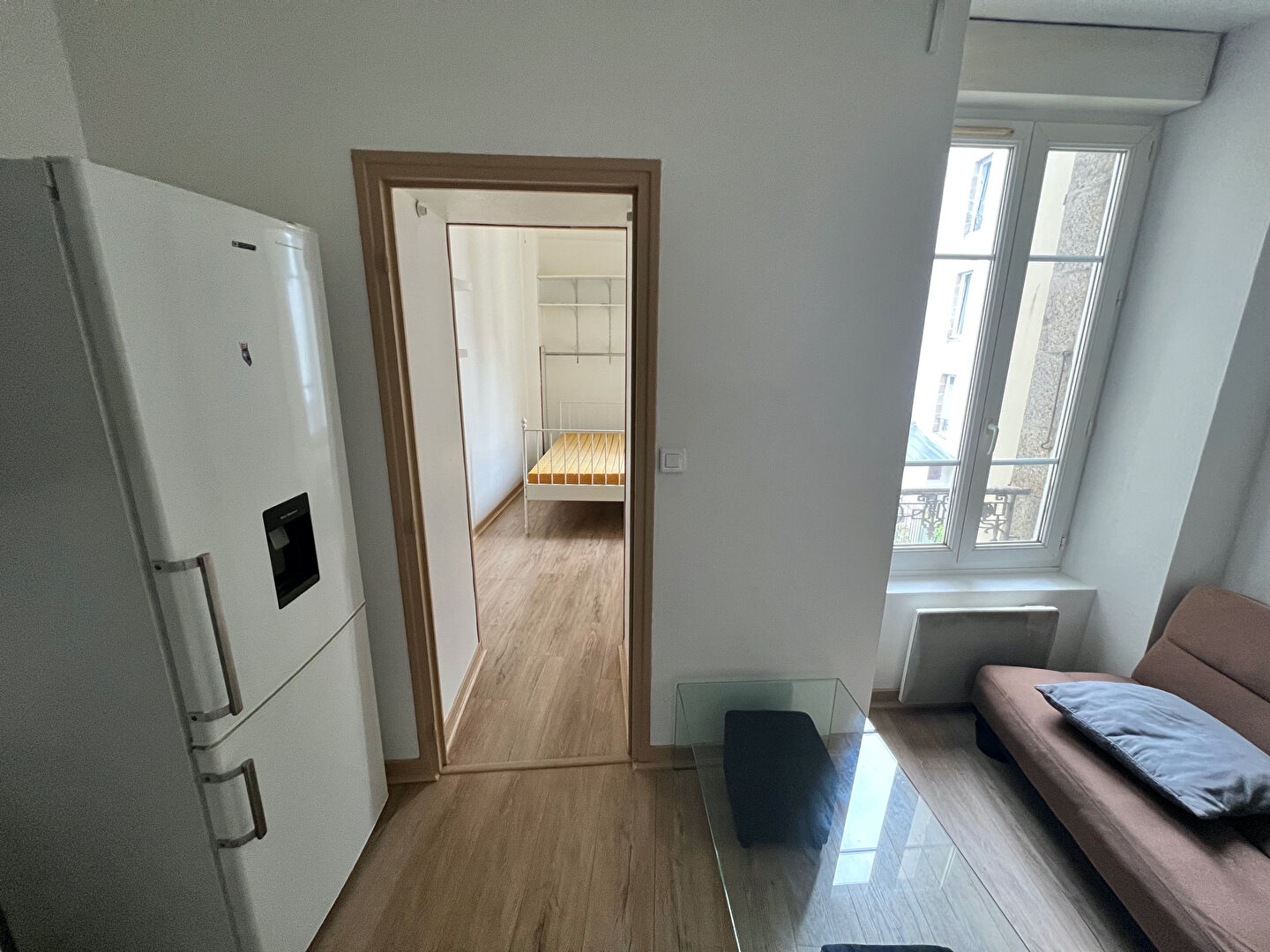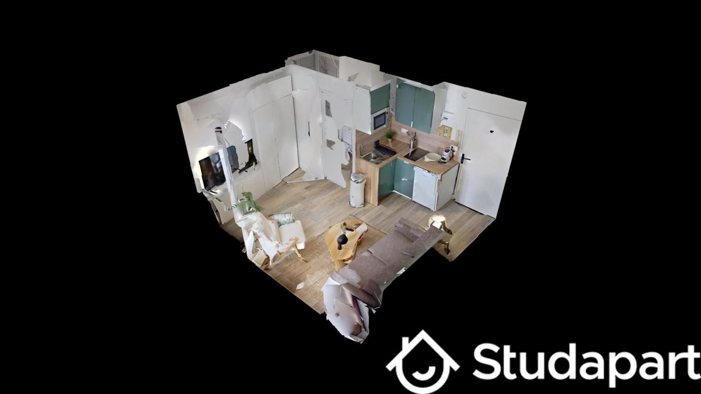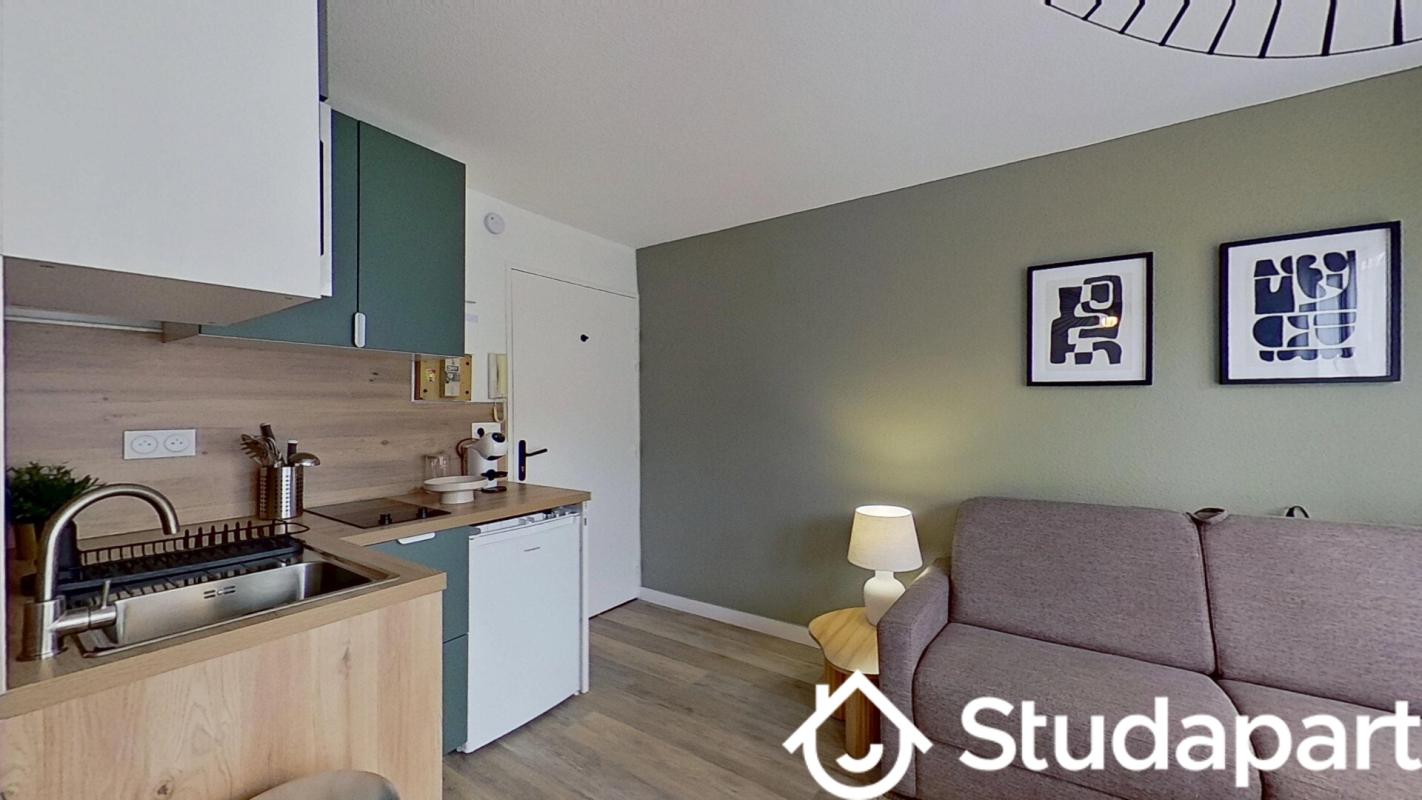 BREST HARTELOIRE - Studio entièrement rénové de 18m2 donnant sur cour au calme Pièce de vie principale avec kitchenette aménagée + plaques et frigo salle d'eau avec WC. branchement pour la machine à laver.