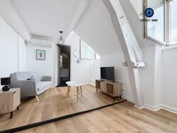 Situé au 3? et dernier étage (sans ascenseur) d'un immeuble de centre-ville, ce charmant appartement T2 meublé offre un cadre de vie confortable et fonctionnel, au coeur de Brive. Il se compose de : une pièce de vie lumineuse, une cuisine aménagée et équipée, une entrée pouvant servir de bureau, idéale pour le télétravail, une chambre séparée, une salle d'eau avec WC. L'appartement bénéficie d'une climatisation réversible et d'un environnement calme, tout en étant à proximité immédiate des commerces et services. Le logement est disponible immédiatement. ? Idéal pour une personne seule ou un couple recherchant un logement meublé, confortable et bien situé.