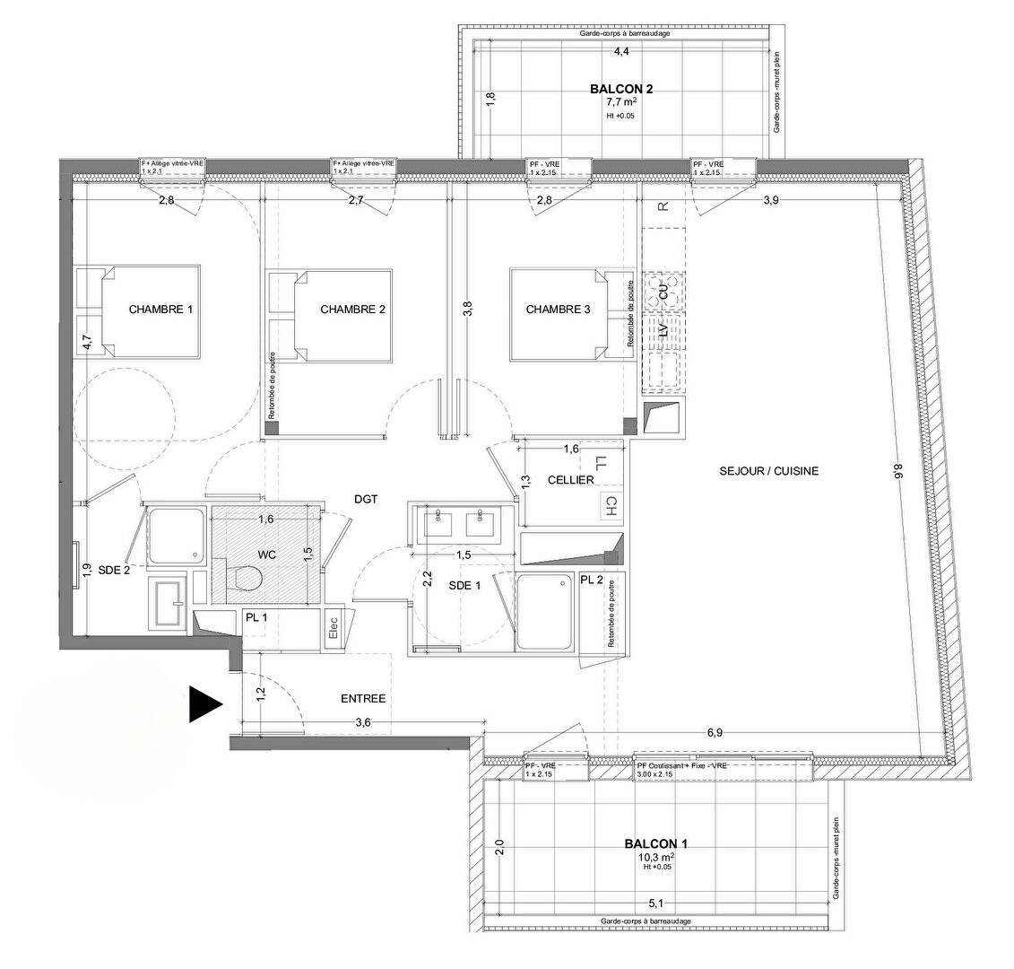 Bruz - Appartement 3 pièces 85.80m² avec jardin de 67.79m² et terrasse 8.62m² - loggia de 6.36m², stationnement en sous-sol sécurisé - local vélo. Frais de notaire offerts Proche de l'hyper centre de Bruz, des écoles et des commerces, cet appartement 3 pièces est situé en rez-de-jardin d'une résidence contemporaine conforme aux normes environnementales RT2020. D'une surface habitable de 85.80m², cet appartement se compose d'une entrée avec placard, d'un séjour salon avec cuisine ouverte donnant accès à une terrasse de 8.62m² et un jardin de 67.79m², ainsi qu'à une loggia exposé à l'Ouest de 6.36m² . L'espace nuit comprend un dégagement, deux chambres, une salle d'eau, un WC indépendant et un cellier offrant un rangement pratique. Autre cellier à l'extérieur. Un stationnement privatif en sous-sol complète cet ensemble. Local vélo. Côté mobilité, la localisation est idéale : la gare TER de Bruz permet de rejoindre Rennes en seulement 10 minutes, les lignes de bus STAR facilitent les déplacements locaux, et la proximité de l'aéroport Rennes Bretagne renforce la connectivité de ce bien. Prix promoteur. Les informations sur les risques auxquels ce bien est exposé sont disponibles sur le site Géorisques : www.georisques.gouv.fr. Copropriété de 39 lots - dont 17 lots habitation. Charges annuelles : 1224 euros.