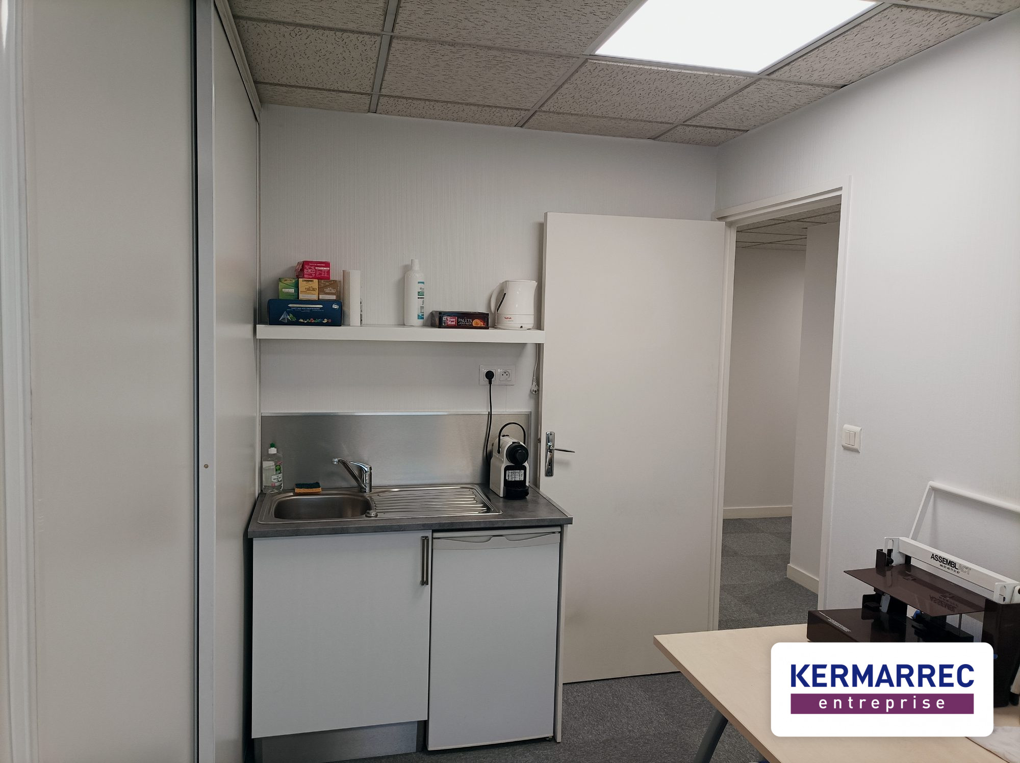 Récemment rénové, il est composé d'un grand open space pouvant servir de salle de réunion, de deux bureaux fermés, d'une cuisine/salle de pause, d'une douche ainsi que de WC.