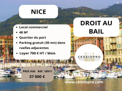 Fiche Id-UBW175904 : Nice, secteur Centre ville, Local commercial boutique d'environ 45 m2 comprenant 2 piece(s) - - Equipements annexes : - chauffage : Aucun - Plus d'informations disponibles sur demande... - Mentions légales : Proposé à la vente à 38600 Euros (Dont 10.29% TTC d'honoraires à la charge de l'acquéreur, soit un prix hors honoraires de 35000 Euros) - Affaire suivie par Mme Tina PASTORE (Agent commercial independant) - Reseau Immo-Diffusion Nice - Pour plus d'informations, contactez notre secrétariat au 09 74 53 13 81 (Appel gratuit ou prix d'une communication locale)