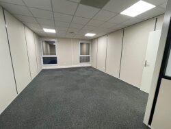 Composé de grands bureaux adaptés pour accueillir plusieurs personnes ou être aménagés en open space, ces locaux se situent au rez-de-chaussée d'un immeuble indépendant en R+1.