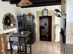 Cette maison est située au bout d'un chemin de campagne sans issue, avec seulement deux maisons voisines qui ne sont actuellement pas habitées en permanence. Un endroit idéal pour ceux qui recherchent le calme et la nature. Vous entrez dans la pièce à vivre qui sert actuellement de salle à manger, avec un plafond à poutres apparentes, un poêle à granulés, un insert actuellement inutilisé et une vue magnifique sur le jardin. De là, un escalier mène à l'étage supérieur. La cuisine semi-ouverte est reliée à la salle à manger et équipée d'une cuisinière à gaz, d'un four, de branchements pour lave-vaisselle et lave-linge. Elle présente également un plafond avec poutres apparentes et un détail authentique d'un ancien four à pain. Quelques marches plus bas, vous trouverez l'arrière-cuisine. Depuis la cuisine, des portes-fenêtres donnent accès à une terrasse couverte sur le côté de la maison. Depuis la salle à manger, une porte à gauche mène à la salle de bains avec baignoire, toilettes et lavabo, et une autre porte mène à une chambre qui sert actuellement de salon. À l'étage supérieur se trouve un grand palier (ancienne chambre) où la rénovation doit encore être terminée, et à gauche de celui-ci, une deuxième chambre. À l'extérieur, vous profiterez d'un jardin bien entretenu et entièrement clôturé de 3136 m2 avec un puits, une dépendance/garage et un abri pour voiture à côté de la maison. La maison dispose de volets en bois, d'un toit en bon état et est située dans un environnement calme, entouré de champs. Ref : 101706 Prijs : 160.500 EUR NoRSAC : 879 175 784 N'hésiter pas à nous contacter, langues parlées : Français , Anglais, Néerlandais et Allemand