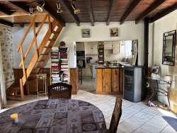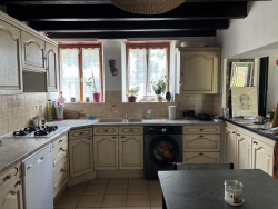 Cette maison est située au bout d'un chemin de campagne sans issue, avec seulement deux maisons voisines qui ne sont actuellement pas habitées en permanence. Un endroit idéal pour ceux qui recherchent le calme et la nature. Vous entrez dans la pièce à vivre qui sert actuellement de salle à manger, avec un plafond à poutres apparentes, un poêle à granulés, un insert actuellement inutilisé et une vue magnifique sur le jardin. De là, un escalier mène à l'étage supérieur. La cuisine semi-ouverte est reliée à la salle à manger et équipée d'une cuisinière à gaz, d'un four, de branchements pour lave-vaisselle et lave-linge. Elle présente également un plafond avec poutres apparentes et un détail authentique d'un ancien four à pain. Quelques marches plus bas, vous trouverez l'arrière-cuisine. Depuis la cuisine, des portes-fenêtres donnent accès à une terrasse couverte sur le côté de la maison. Depuis la salle à manger, une porte à gauche mène à la salle de bains avec baignoire, toilettes et lavabo, et une autre porte mène à une chambre qui sert actuellement de salon. À l'étage supérieur se trouve un grand palier (ancienne chambre) où la rénovation doit encore être terminée, et à gauche de celui-ci, une deuxième chambre. À l'extérieur, vous profiterez d'un jardin bien entretenu et entièrement clôturé de 3136 m2 avec un puits, une dépendance/garage et un abri pour voiture à côté de la maison. La maison dispose de volets en bois, d'un toit en bon état et est située dans un environnement calme, entouré de champs. Ref : 101706 Prijs : 160.500 EUR NoRSAC : 879 175 784 N'hésiter pas à nous contacter, langues parlées : Français , Anglais, Néerlandais et Allemand