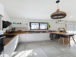 Dans un petit lotissement de la commune de Cabestany, cette villa construite en 2020 est peut-être votre prochain coup de coeur. Avec 90 m2 de superficie habitable, elle est idéalement distribuée avec ses trois chambres dont une suite en rez-de-chaussée. Sa pièce de vie climatisée d'environ 40 m2 offre un volume agréable avec sa belle hauteur sous plafond et une lumière permanente grâce à de larges ouvertures et une exposition sud. Elle donne accés à un extérieur joliment végétalisé, aménagé d'une terrasse en bois et d'un bassin carré. Au même niveau, un wc indépendant avec lave-mains est présent. A l'étage, vous trouverez un chambre avec salle d'eau attenant et rangement, ainsi qu'une autre avec placard Ainsi qu'un second wc. La maison dispose d'un garage avec porte motorisée ainsi que deux stationnements privatifs. Elle est impeccable et prête à vous accueillir sans aucun travaux dés cet été si vous êtes réactifs. Si ce joli bien vous intéresse, merci de contacter Cindy au 06.25.94.26.16. La présente annonce a été rédigée sous la responsabilité éditoriale de Cindy Bonifas inscrit au greffe du Tribunal de Commerce de Perpignan sous le numéro rsac 847 952 637 en qualité d'agent commercial sans détention de fond, pour la société DV IMMO 529 647 638 00038 27. Les honoraires sont à la charge du vendeur. DPE A (34) / GES A (1) réalisé le 13/04/2026. Le montant estimé des dépenses annuelles d'énergie pour un usage standard est entre 394EUR et 532EUR (Prix moyen des énergies indexées sur les années 2021, 2022 et 2023) Les informations sur les risques auxquels ce bien est exposé sont disponibles sur le site Géorisques: www.georisques.gouv.fr