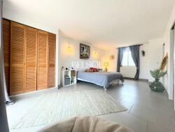 Au calme absolu Maison baignée de lumière Séjour cathédrale de plus de 50m², ouvert sur l'extérieur (baie vitrées à galandage) Cuisine équipée haut de gamme (2023) Première suite parentale au RDC de 22m² (salle d'eau + dressing attenants) Deuxième suite parentale de 34m² à l'étage (salle de bains avec douche et baignoire + dressing attenants) donnant sur un solarium de 13m² La troisième chambre possède également sa propre salle d'eau Buanderie de 10m² Cellier de 4.5m² 2 WC (RDC et étage) Grand Garage avec porte motorisée Piscine entièrement automatisée (2022) Extérieur charmant sans vis-à-vis et sans entretien Exposition SUD Climatisation réversible Assainissement tout à l'égout