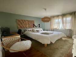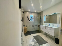 elle se compose d'un magnifique séjour très lumineux de 42 m² avec poêle à bois et un accès direct sur deux terrasses il est ouvert sur une cuisine a/e particulièrement moderne et fonctionnelle, une vaste sd'o avec douche italienne, 3 chambres. En sous-sol : une buanderie, un grand garage 2/3 voitures, un atelier. carport, petite piscine, cabane pour animaux.