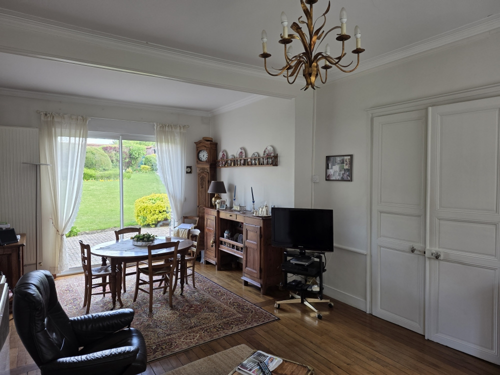 CHEZ SAINTE ANNE IMMO - CAIX - à 5 minutes de Rosières-en-Santerre : ville dynamique : gare, école, commerces, cabinet médical, pharmacies, à 30 minutes d'Amiens Je vous présente une maison individuelle sur un terrain de 1068m2 comprenant : Rez-de-Chaussée : une entrée avec dressing desservant un salon, une salle à manger, une cuisine équipée, aménagée, fermée avec un coin repas, une chambre, un espace buanderie et un WC séparé avec lave main R+1 : un palier desservant deux chambres avec un dressing, une troisième chambre, une salle d'eau avec double vasque et un WC séparé R+2 : un grenier de 50m2 Sous sol complet/Cave Extérieur : un jardin avec des places de parkings privatives (possibilité de faire un garage, permis de construire accordé) DPE B ! Menuiseries : aluminium double vitrage + volets roulants électriques en aluminium de marque 'SOMFY' Chauffage : poële à pelé + électrique Ballon d'eau chaude de 300L de marque 'SAUTER' Internet : 5G + fibre optique Assainissement : tout à l'égout Taxe foncière : 850EUR/AN Budget : 269 000EUR FAI, honoraires à la charge du vendeur Contactez Timothé au 06.48.95.62.32, Agent Commercial Agence Sainte Anne Immo (Adhérente FNAIM) 79 rue Jules Barni 80000 AMIENS RCS 803 971 555 CP 8001 2016 000 013