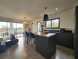 Michel CUNY vous propose à la vente une maison de plain pied, neuve (réceptionnée en 2023), sur un terrain de 1381 m2 avec vue dominante clôturé portail électrique et abri jardin, avec une excellente performance énergétique et climatique classée A, très lumineuse avec la pièce de vie exposée SUD, sans aucune nuisance sonore.