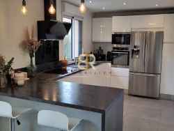 Elle se compose au rez-de-chaussée, d'une entrée avec rangements sur mesure, d'un espace de vie comprenant un vaste SÉJOUR / SALLE À MANGER avec de larges baies vitrées, d'une CUISINE OUVERTE FONCTIONNELLE, pensée par une ARCHITECTE D'INTÉRIEUR, ainsi que d'un CELLIER et de WC. Vous découvrirez également une superbe TERRASSE EXPOSITION SUD, baignée de SOLEIL. Accès direct au GARAGE depuis ce niveau.