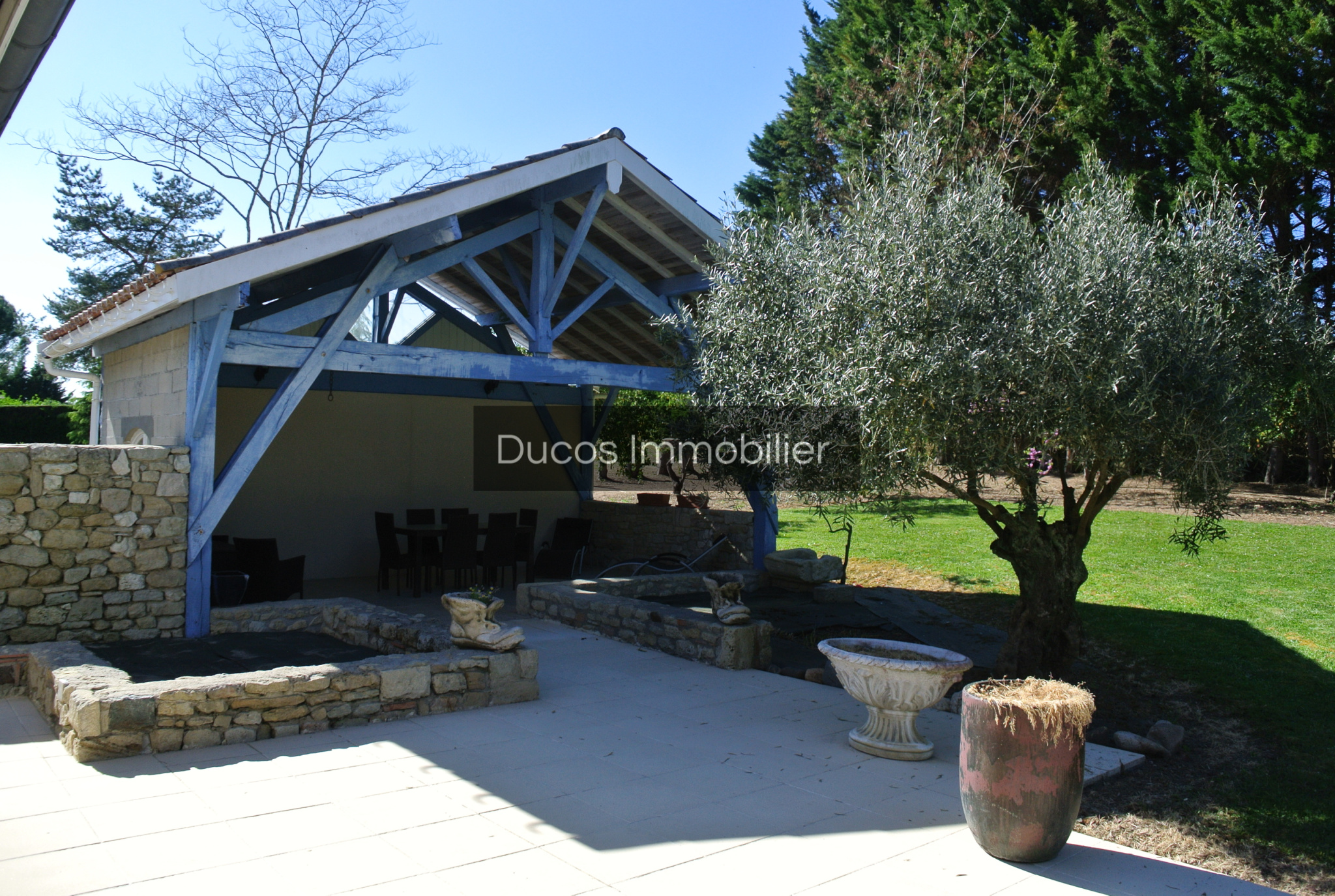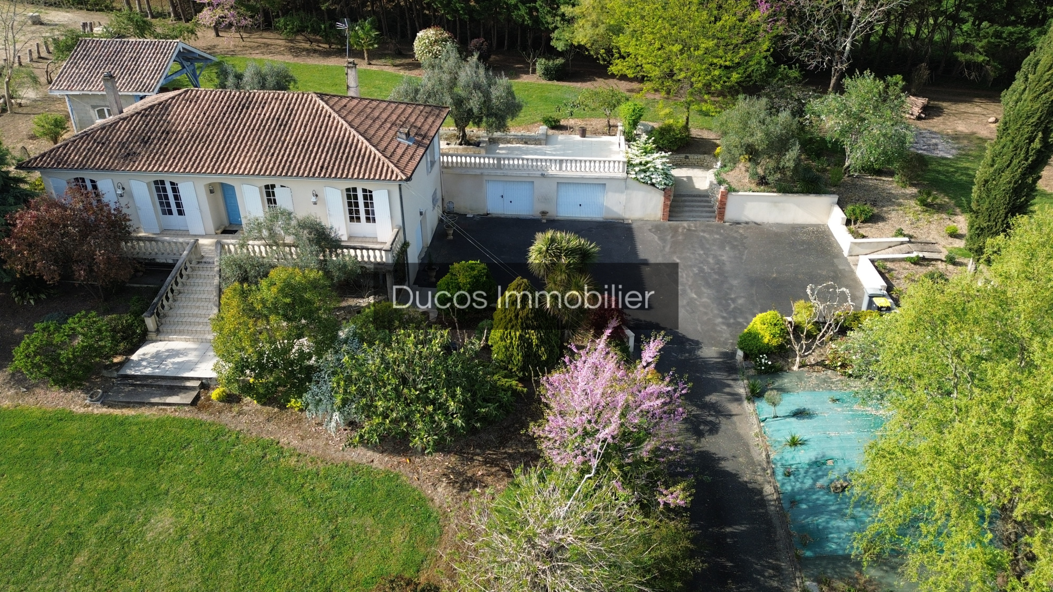 A l'extérieur un magnifique terrain de plus de 6.500 m² avec une piscine idéalement bien exposée , un verger pour les fruits des saisons , quelques chênes truffiers .