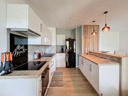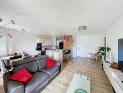 Il se compose d'une entrée, d'une cuisine entièrement équipée ouverte sur le séjour et donnant sur une belle terrasse de 16m2, sans vis à vis, offrant une magnifique vue sur la nature. Le coin nuit se compose d'un grand couloir avec placard de rangement, de 2 chambres avec placards (dont une donnant également sur la terrasse), d'une salle d'eau et de wc séparés.