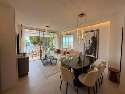 PALM BEACH VUE MER - Appartement de 4 pièces avec vue mer panoramique et accès direct à la mer. Idéalement situé dans le prestigieux quartier du Palm Beach, ce lumineux appartement de 102 m² offre un cadre de vie rare, au sein d'une résidence en front de mer avec accès direct à la plage. L'intérieur, entièrement rénové dans un esprit contemporain, propose un vaste séjour avec salle à manger ouvert sur une cuisine américaine entièrement équipée. Trois chambres en suite, chacune avec sa propre salle d'eau, garantissent confort et intimité à ses occupants.