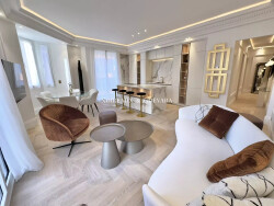 A vendre à Cannes, secteur Croisette et à pas du Martinez, dans un luxueux palace sécurisé et gardienné 24h/24, superbe appartement de 100m² environ, entièrement rénové, bénéficiant d'une belle hauteur sous plafond, des volumes généreux, des prestations haut de gamme et une décoration raffinée, ainsi qu'une vue mer latérale. Le bien se compose d'un hall d' entrée, un séjour lumineux en double exposition avec sa cuisine ouverte parfaitement équipée, une chambre de maître avec dressing, salle-de-bains et douche à l?italienne, une seconde chambre avec salle-de-douche privative et placards.