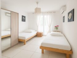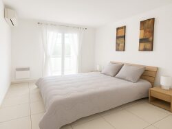 Au calme, l'appartement se compose d'un séjour lumineux avec cuisine ouverte équipée, ouvrant sur une première terrasse de 13 m² offrant une vue dégagée sur les jardins paysagers de la résidence et les collines de la Californie. Les deux chambres bénéficient d'un accès à une seconde terrasse de 13 m², exposée ouest.