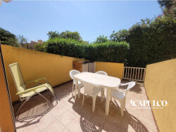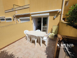CAP D'AGDE / Plage de la Roquille : agréable studio de 18,63m² en rez-de-chaussée comprenant, cuisine aménagée, séjour, salle d'eau avec douche et WC et petit cagibi. Belle terrasse de 13m². Dans une résidence sécurisée avec parking privé, à deux pas de la plage.
