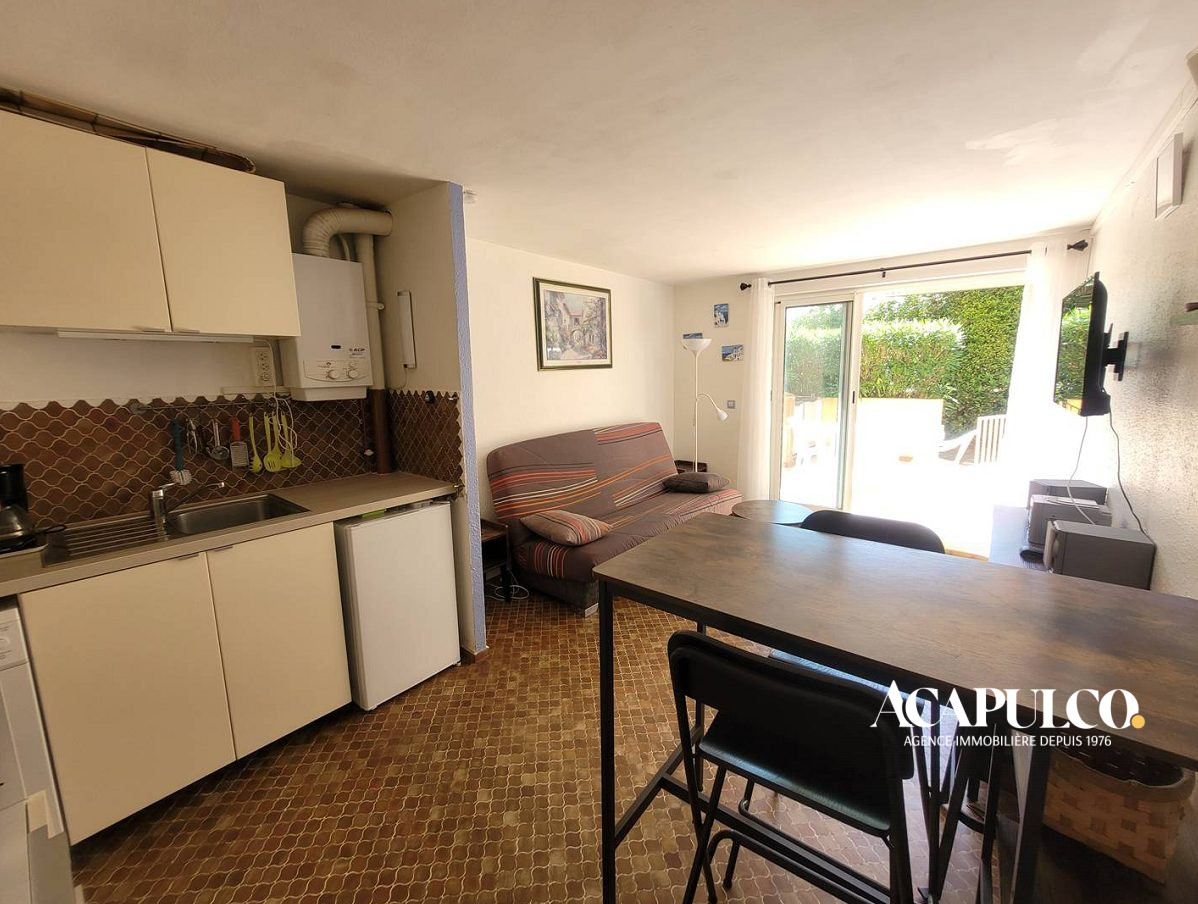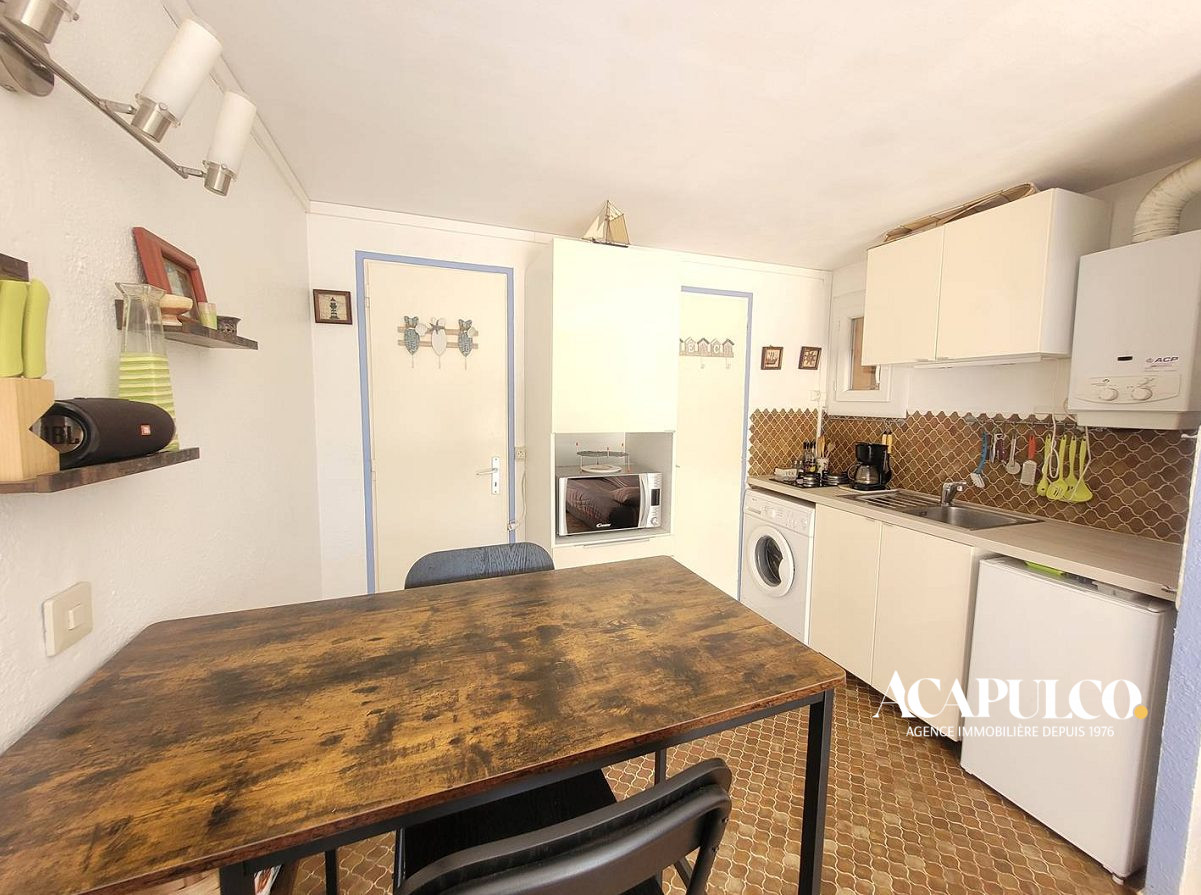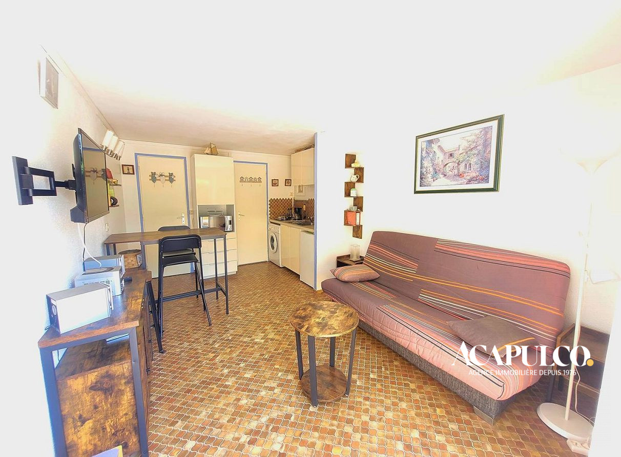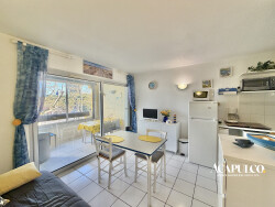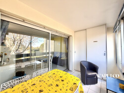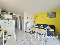 CAP D'AGDE / Plage Richelieu : Appartement de type deux pièces au 2ème étage avec ascenseur comprenant : séjour avec kitchenette, une chambre, salle d'eau avec WC. Agréable loggia vitrée. A 800m environ de la plage Richelieu. Dans une résidence sécurisée avec piscine et parking privé.