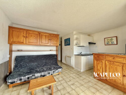 CAP D'AGDE / Plage Richelieu : Appartement de type deux pièces au 1er étage avec ascenseur comprenant : cuisine, séjour, chambre, salle de bains avec baignoire et WC séparés. Agréable loggia vitrée. A 200m environ de la plage Richelieu. Dans une résidence sécurisée avec piscine, pataugeoire et parking privé.