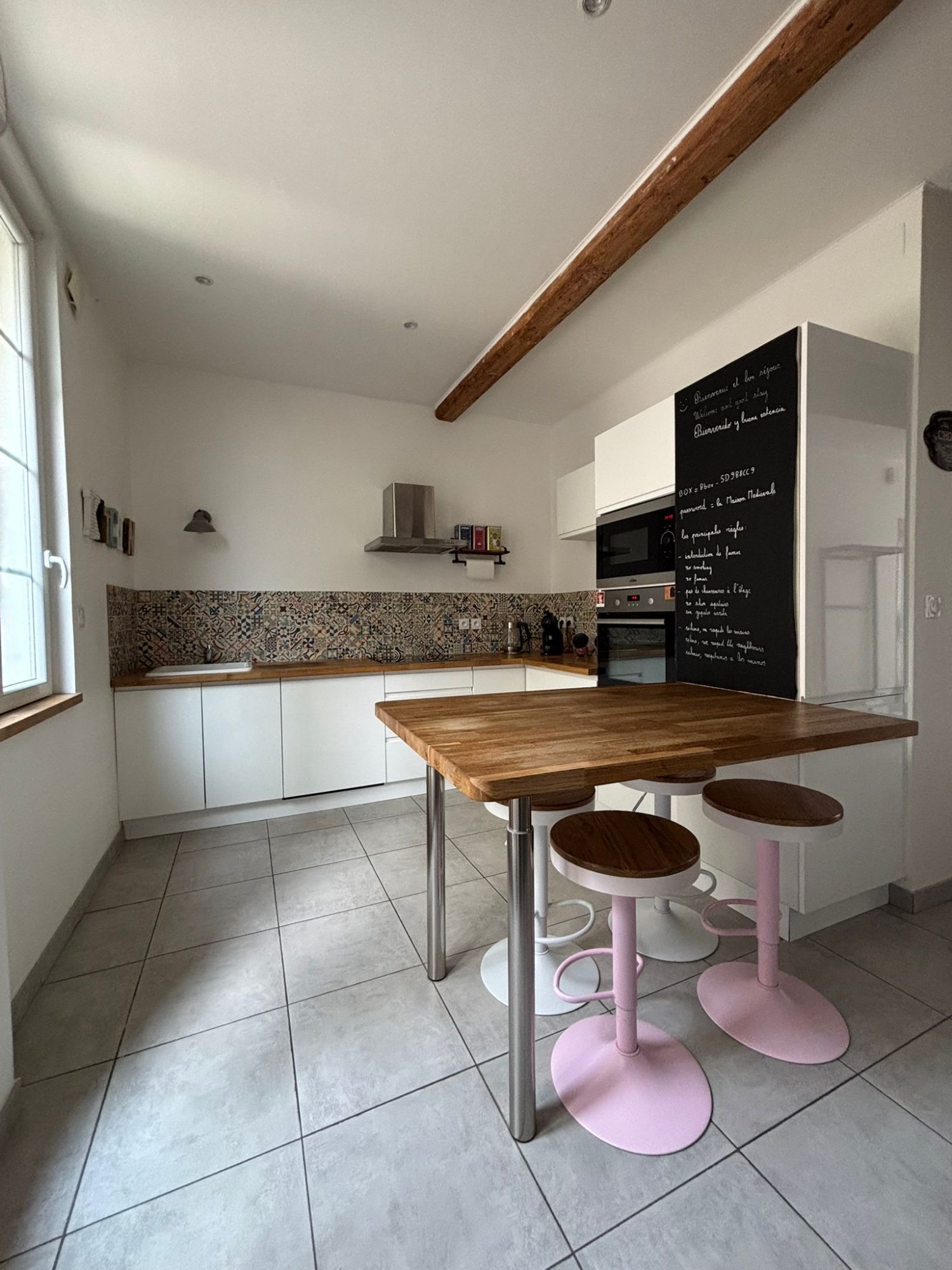 Elle se compose d'un vaste séjour lumineux de 67,82 m2 avec cuisine ouverte équipée. Les ouvertures offrent une belle vue dégagée sur le jardin et un accès direct à la terrasse de 70m2 ouverte et 14m2 couverte.