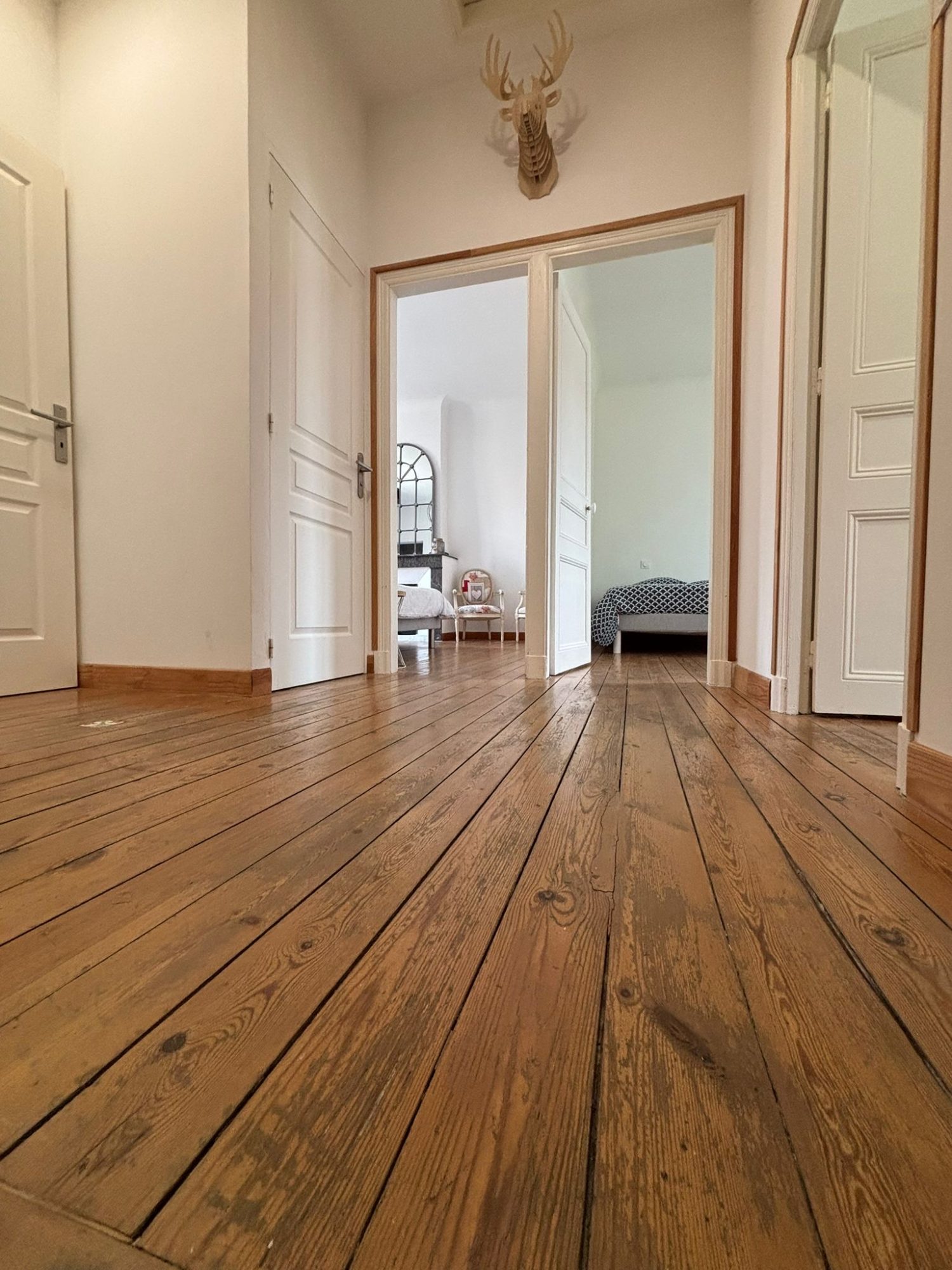 La partie nuit comprend 3 chambres avec placards intégrés, dont une grande chambre parentale de 19 m2 climatisée. La salle d'eau est moderne et fonctionnelle, avec douche à l'italienne et double vasque.