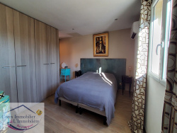 À Carnoules, découvrez cette élégante villa de type 3 d'environ 97 m2 avec piscine, alliant confort et modernité. Le rez-de-chaussée propose une spacieuse pièce de vie de 45 m2, idéale pour recevoir, comprenant un salon/salle à manger et une cuisine ouverte. Un dégagement, un cellier/buanderie, un wc indépendant, ainsi qu'une chambre avec salle d'eau privative. À l'étage, la suite parentale offre une chambre, un bureau/dressing, et une salle d'eau avec wc. Côté extérieur, profitez d'un jardin paysagé, de terrasses avec pergolas et d'une piscine de type bassin avec cascade, parfaits pour des moments de détente. La villa bénéficie de menuiseries PVC et aluminium double vitrage, de la climatisation réversible et de volets roulants électriques. Elle dispose de deux stationnements sur le terrain avec portail coulissant automatisé, ainsi qu'un parking à proximité pour vos invités. Vous apprécierez la proximité immédiate du centre et de toutes les commodités. Un bien rare à visiter rapidement ! Les informations sur les risques auxquels est exposé ce bien sont disponibles sur le site Géorisques : www.georisques.gouv.fr