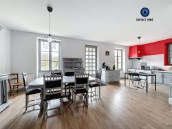 Charmante maison en pierre avec terrasse et jardin Larche (19600) Au coeur de la commune de Larche, à deux pas de toutes les commodités (écoles maternelles et primaires, collège, crèche, commerces), venez découvrir cette maison en pierre d'environ 96 m², implantée sur un beau terrain plat d'environ 1 000 m². Dès l'arrivée, vous apprécierez son sous-sol intégral avec double garage, offrant de nombreux espaces de rangement. À l'étage principal, une agréable terrasse en bois d'environ 24 m² vous invite à profiter pleinement des beaux jours. L'entrée s'ouvre sur une belle pièce de vie salon-séjour-cuisine d'environ 37 m², lumineuse et conviviale, idéale pour partager des moments en famille ou entre amis. Un dégagement dessert un WC indépendant, une buanderie, ainsi qu'une première chambre disposant de sa salle d'eau privative. À l'étage supérieur, un palier dessert deux chambres avec placards, une salle d'eau et un WC indépendant, offrant un espace nuit fonctionnel et bien pensé. Côté extérieur, le terrain entièrement plat permet d'imaginer facilement un espace détente, un potager ou des jeux pour les enfants. Les plus : Maison en pierre pleine de charme Terrasse bois Terrain plat d'environ 1 000 m² Raccordement au tout-à-l'égout Chauffage électrique Proximité immédiate des écoles et services Lac du Causse accessible en quelques minutes Les menuiseries en bois simple vitrage pourront être remplacées afin d'améliorer le confort thermique et énergétique. Une maison agréable à vivre, idéale pour une famille ou pour un premier achat, dans un cadre de vie recherché aux portes de Brive-la-Gaillarde.