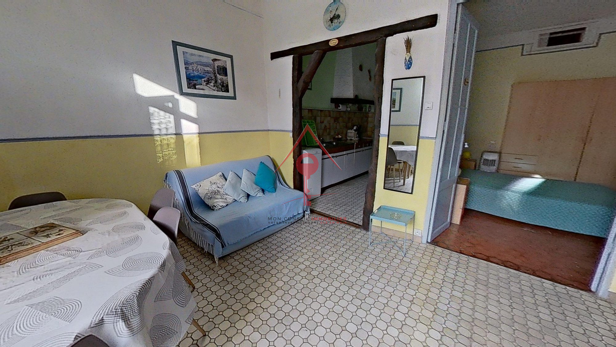 - soit vers une pièce de vie lumineuse avec une cuisine équipée et une loggia tournée vers le château,