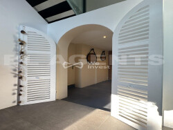 Dès l'arrivée, la porte d'entrée majestueuse donne le ton. L'entrée mène, par une superbe double porte en arc, à une pièce de réception spectaculaire avec plafond cathédrale, baignée de lumière grâce aux baies vitrées à galandage offrant une vraie vie dedans/dehors vers la terrasse plein sud. Cheminée, plancher chauffant et volumes impressionnants créent une atmosphère à la fois élégante et chaleureuse.