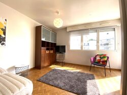 Grand studio entièrement meublé proche gare se composant d'une entrée, pièce de vie avec placard donnant sur un petit balcon, cuisine aménagée et équipée (plaque et réfrigérateur), salle de bains et wc séparé. Une place de parking en sous-sol et une cave. Disponible immédiatement.