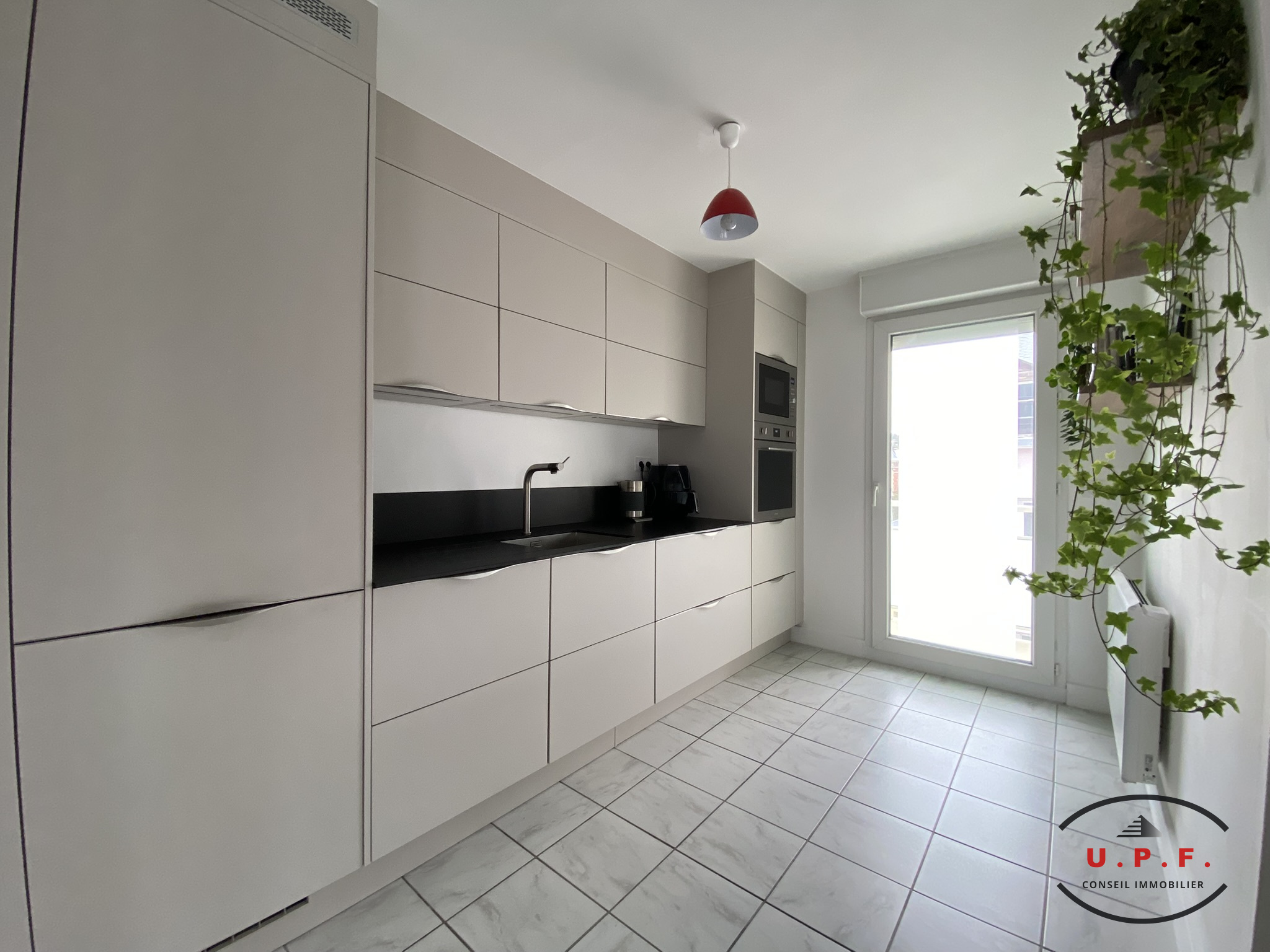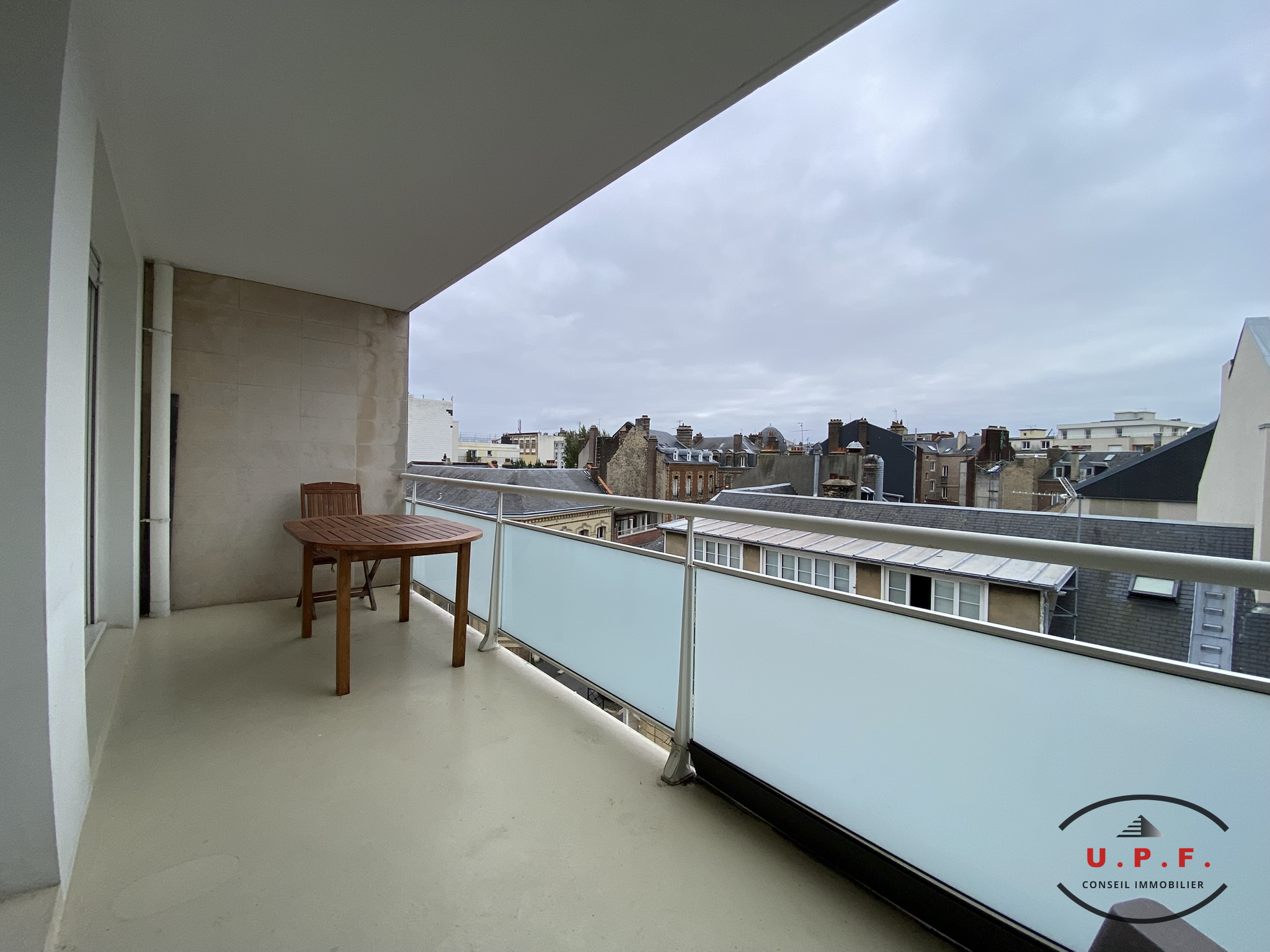 AU PIED DES COMMERCES, BEL APPARTEMENT F3 PARQUETÉ VUE MER AVEC ASCENSEUR ET GARAGE - Entrée, Salle à Manger, Séjour, Salon accès Balcon, Possibilité Deux Chambres, Salle de Bains + Douche, Cave - BEAUCOUP DE CACHET