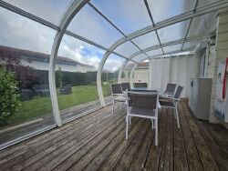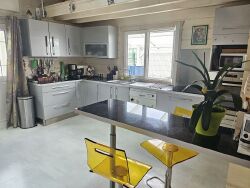 BIEN SOUS COMPROMIS. MONTROND LES BAINS,EXCLUSIVITE, jolie et grande maison bois type chalet de 125.82 m² habitables (96 m² loi carrez), dans une résidence fermée et sécurisée avec piscine chauffée. Au rez de chaussée, on trouve une cuisine équipée et aménagée ouverte sur un vaste coin repas et 1 salon, une veranda orientée à l'ouest, une salle d'eau, un WC indépendant avec lave main et un cellier avec le cumulus ; à l'étage : une petite mezzanine, 3 chambres (aujourd'hui 2 chambres car une de 28 m² au sol et 20,50 m² loi carrez avec 2 fenêtres). Volets roulants électriques, chauffage climatisation réversible. Le tout sur 400 m² de terrain. Classe énergie B. Prix moyens des énergies indexés sur les années 2021/22/23 abonnement compris entre 740 et 1070 € par an. Charges collectives de 150 € par mois . 219 000 €. Honoraires à la charge du vendeur. ROCHETTE Immobilier. Marie PERRET ROCHETTE O6 06 65 66 68. Les informations sur les risques auxquels ce bien est exposé sont disponibles sur le site Géorisques : www.georisques.gouv.fr